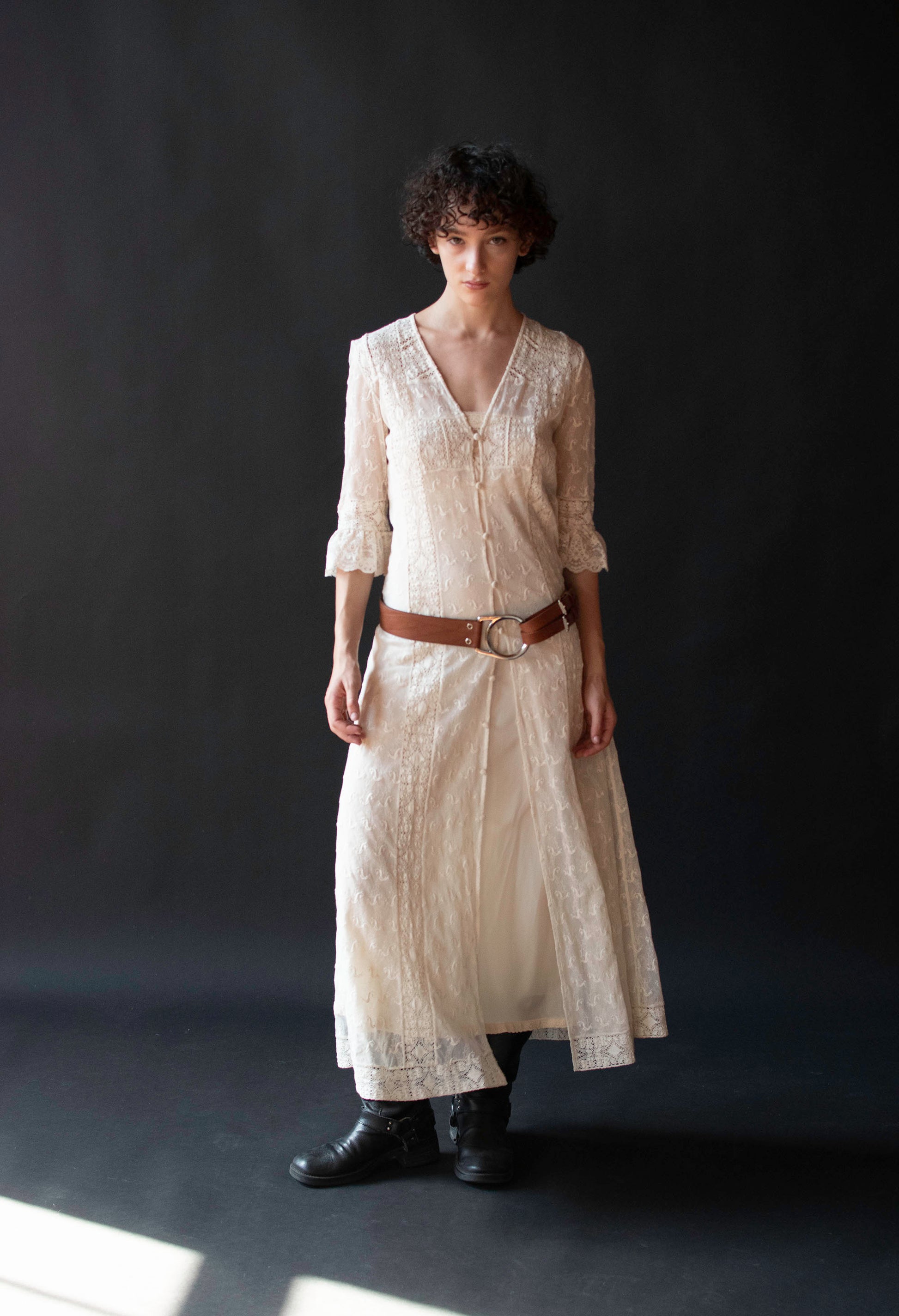 2000s light brown leather belt with silver tone hardware and buckles by Ralph Lauren. Made in China.