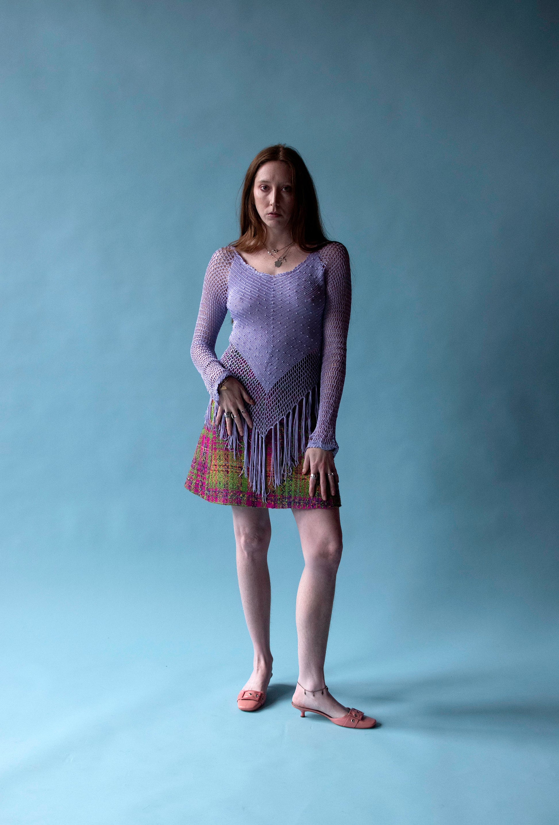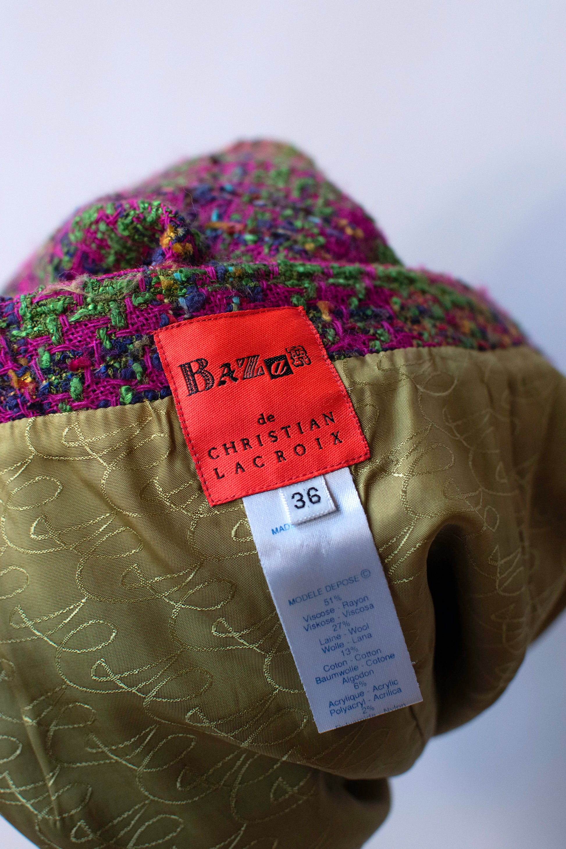 1990s plaid mini skirt by Christian Lacroix Bazar. Metal zippers at front. Outer fabric is a (mostly) synthetic and natural fiber blend, lining is acetate and rayon.