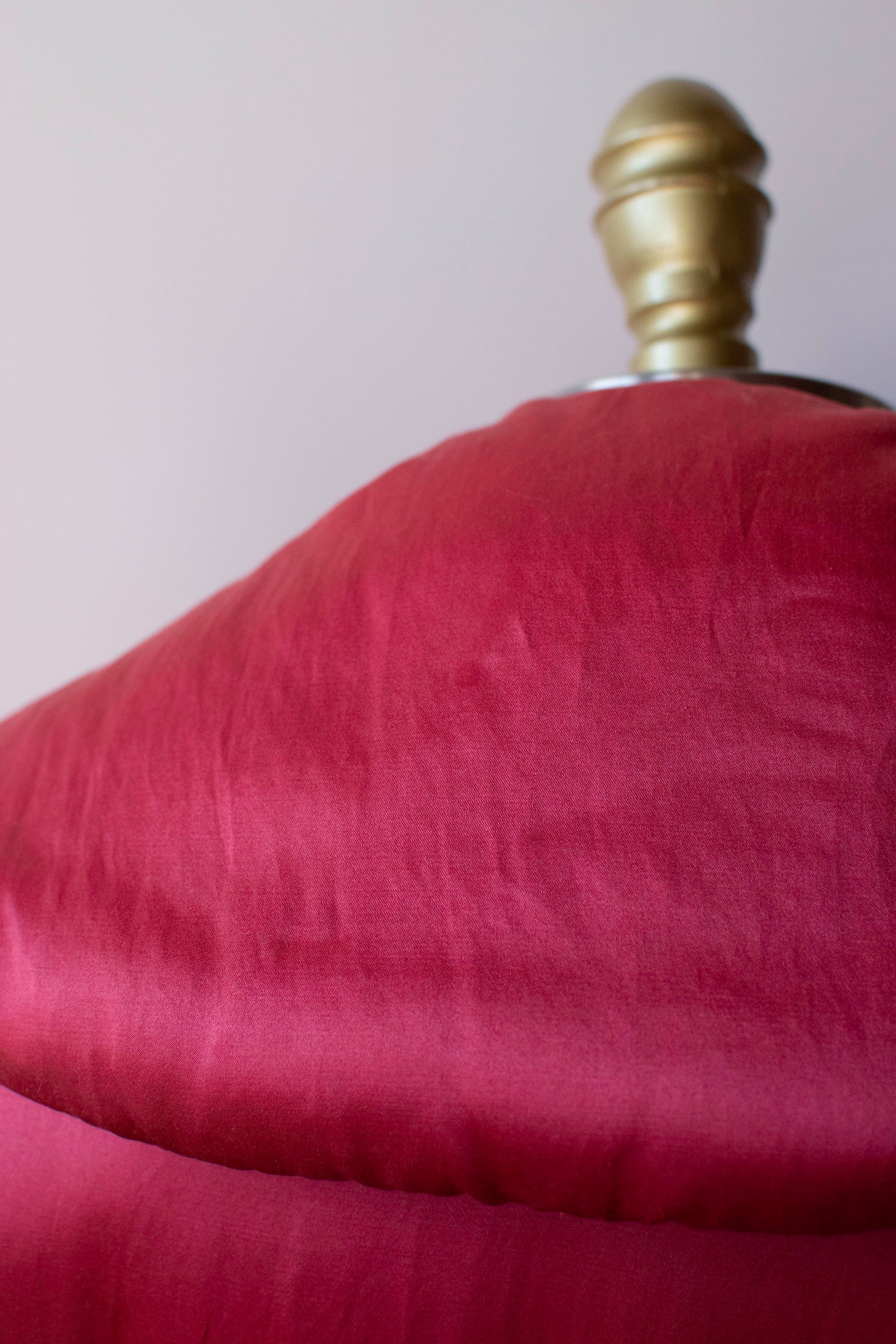 Y2K raspberry puffer coat by Catherine Malandrino. Shawl collar. Double breasted snap front. Hip Pockets. Full skirt. Outer: 70% silk and 30% cotton with acetate lining.